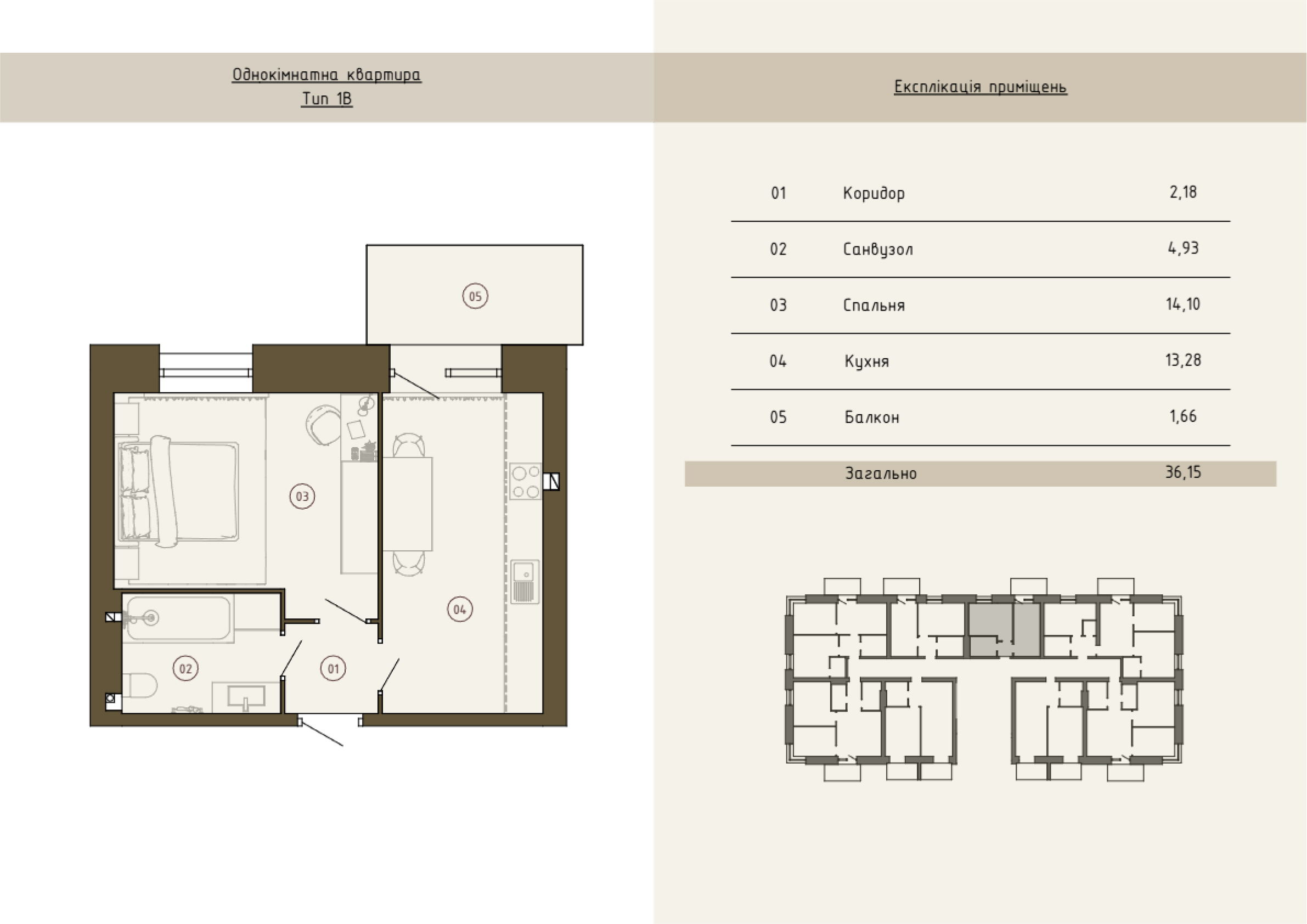 На кухні достатня кількість місця для обіднього столу на чотирьох і не менше 4 поверхонь для роботи. У спальні – для ліжка і навіть маленької зони відпочинку чи компактного столика.